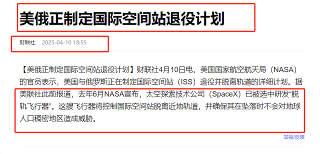 财联社 2025-04-10 《美俄正制定国际空间站退役计划》
